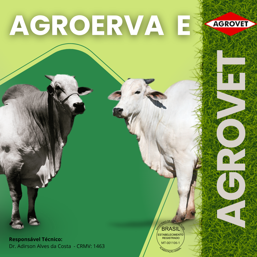 AGROERVA E, é um premix vitamínico aminoácido para mistura para bovinos de corte e leite de todas as idades e indicado para todas as suas fases de criação.