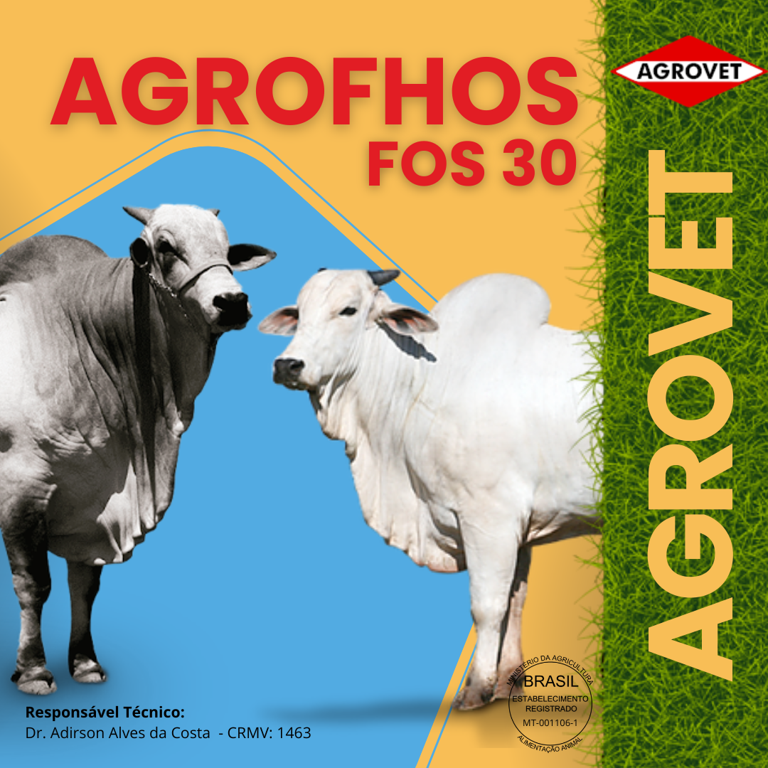 AGROFHOS é um suplemento mineral para mistura, para bovinos de corte e leite de todas as idades e indicado para todas as fases de criação.