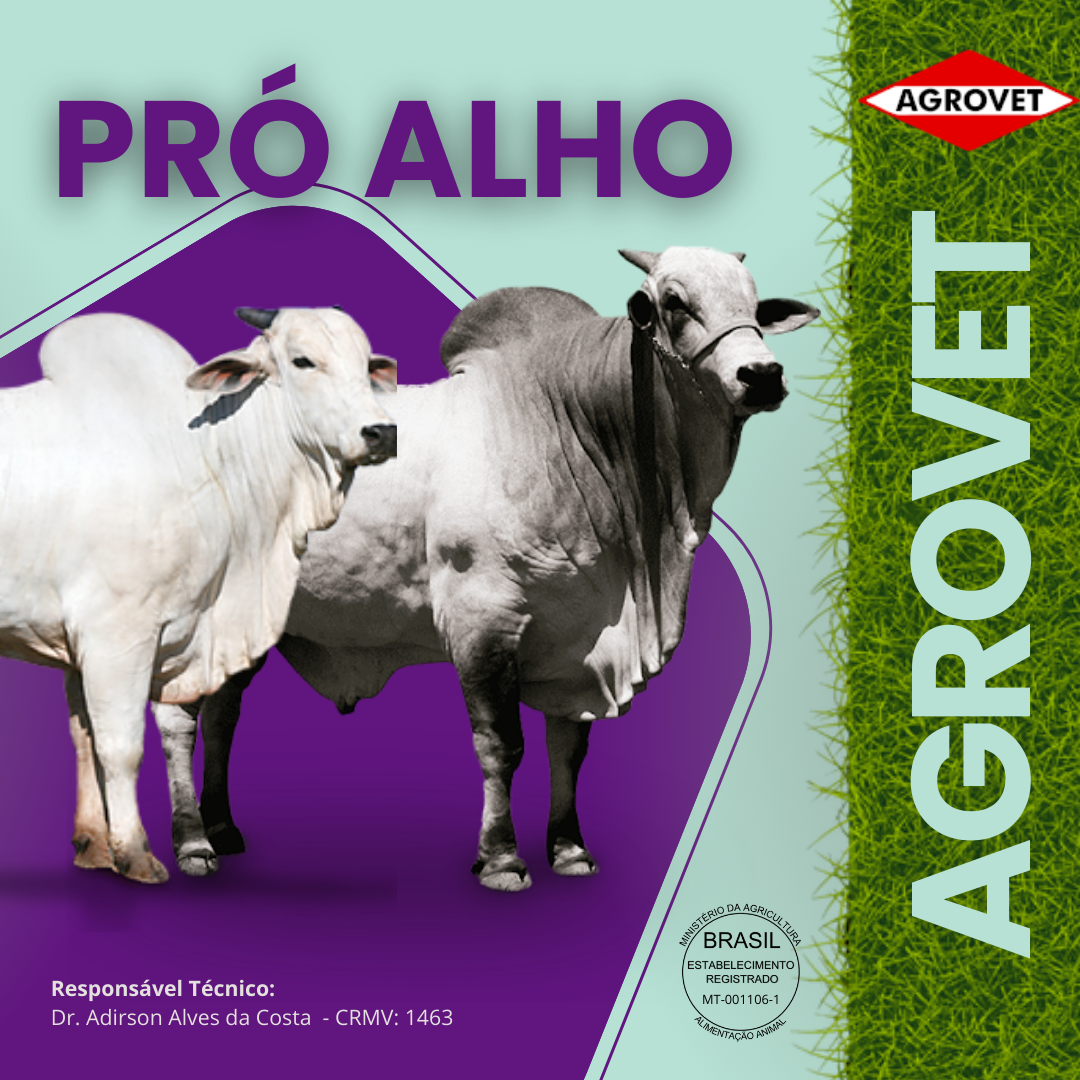 PRÓ ALHO, é um núcleo mineral para mistura, para bovinos de corte e leite de todas as idades e indicado para todas as fases de criação.